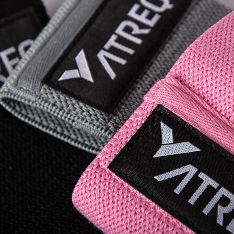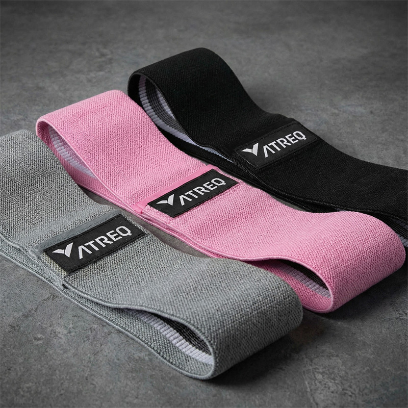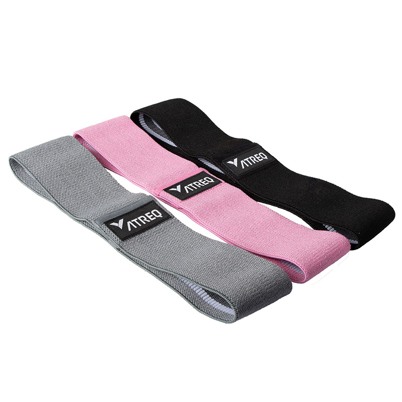 - Pack of 3 fabric resistance hip bands.