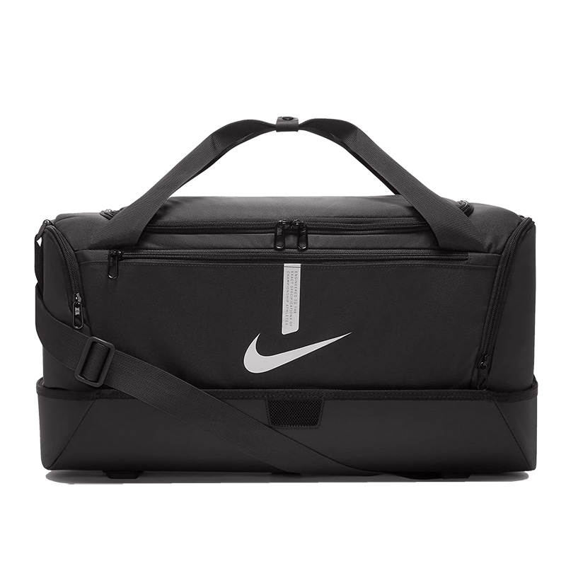 Inside, you'll find ample space with a main body compartment designed to accommodate all your essentials. Keep your gear clean and sorted with the zippered wet/dry compartment at the bottom, tailored to meet the demands of your active lifestyle. Choose from medium or large sizes, both thoughtfully equipped with side compartments for added convenience. With versatile carrying options and the reliability of 100% polyester construction, the Nike Academy 21 Duffel Bag is more than just storage—it's an upgrade to your training regimen.